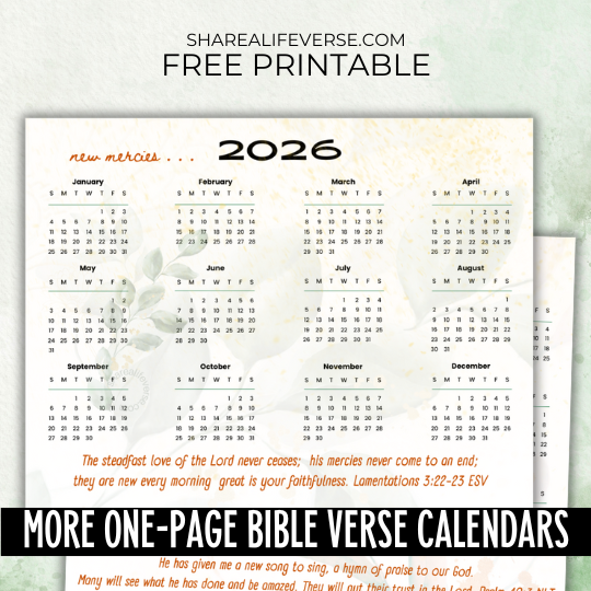 More Free Printable One-Page 2026 Bible Verse Calendar – All Things New