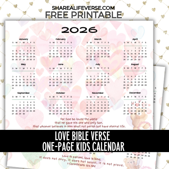 Free Printable 2026 One-Page Kids Calendar with Bible Verses